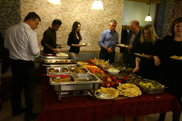 Все перечисленное выше, что касается блюд, нашло своё воплощение в буфете, представленном настоящими кудесниками грузинской кухни Светланой и Кахабер Домотсиди. Неподдельное и настоящее радушие излучала улыбка и теплые слова ведущей вечера Светланы, а музыкальное оформление было подкреплено прекрасно подобранными танцевальными мелодиями диск-жокея Руслана и безусловным украшением этого вечера стало, как всегда, блистательное выступление композитора, музыканта и исполнителя Гочи Иашагашвили, чьё исполнительское искусство было на высочайшем профессиональном уровне! Подтверждением этому были бурные аплодисменты и искренние слова благодарности от всех побывавших в этот незабываемый вечер в переполненном ресторане грузинской и греческой кухни Albrechts-Garten!