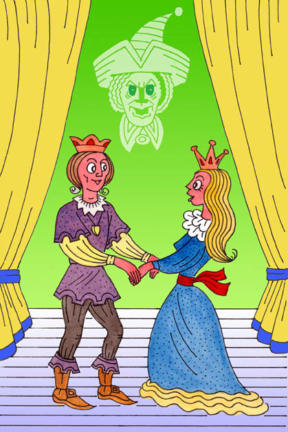 – Филипп, как вы жестоки, что отсутствовали столько дней! – взяв себя в руки, защебетала принцесса и, на правах невесты, которую она изображала из себя для волшебника, вдруг взяла да обняла принца! Тот, бедняга, ничего ровным счётом не понимавший, покраснел и... тоже обнял принцессу!